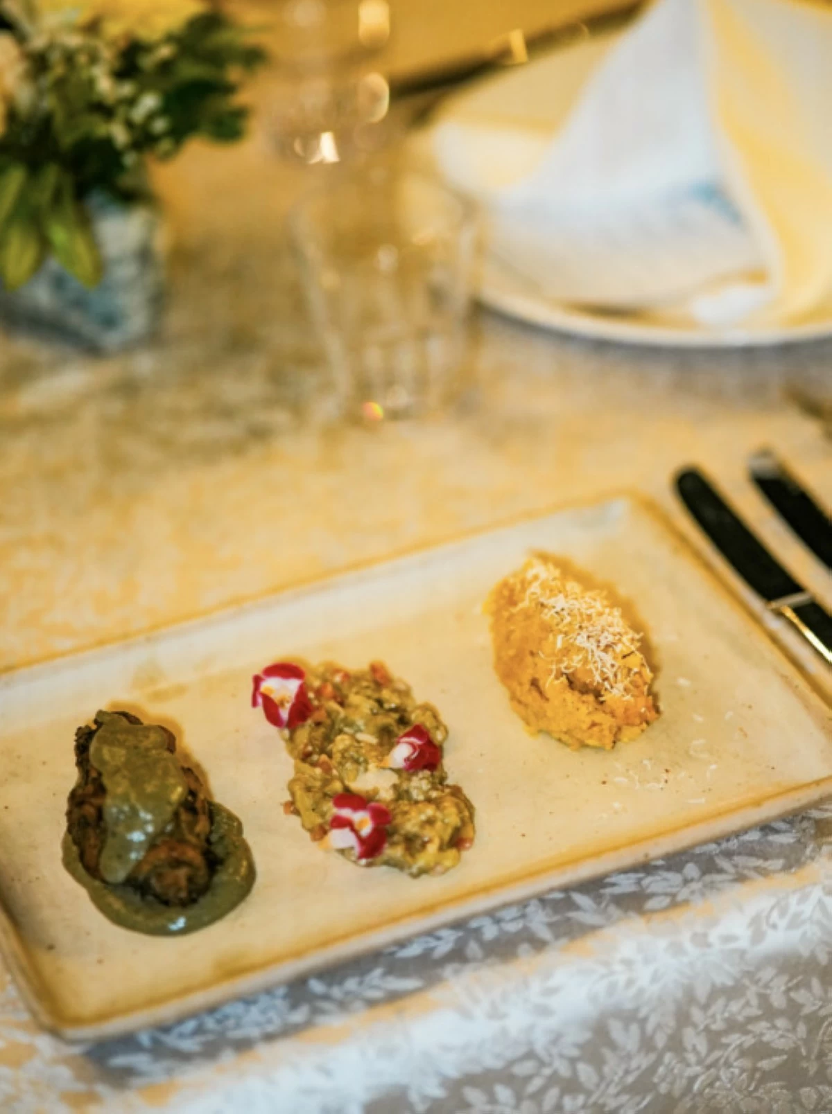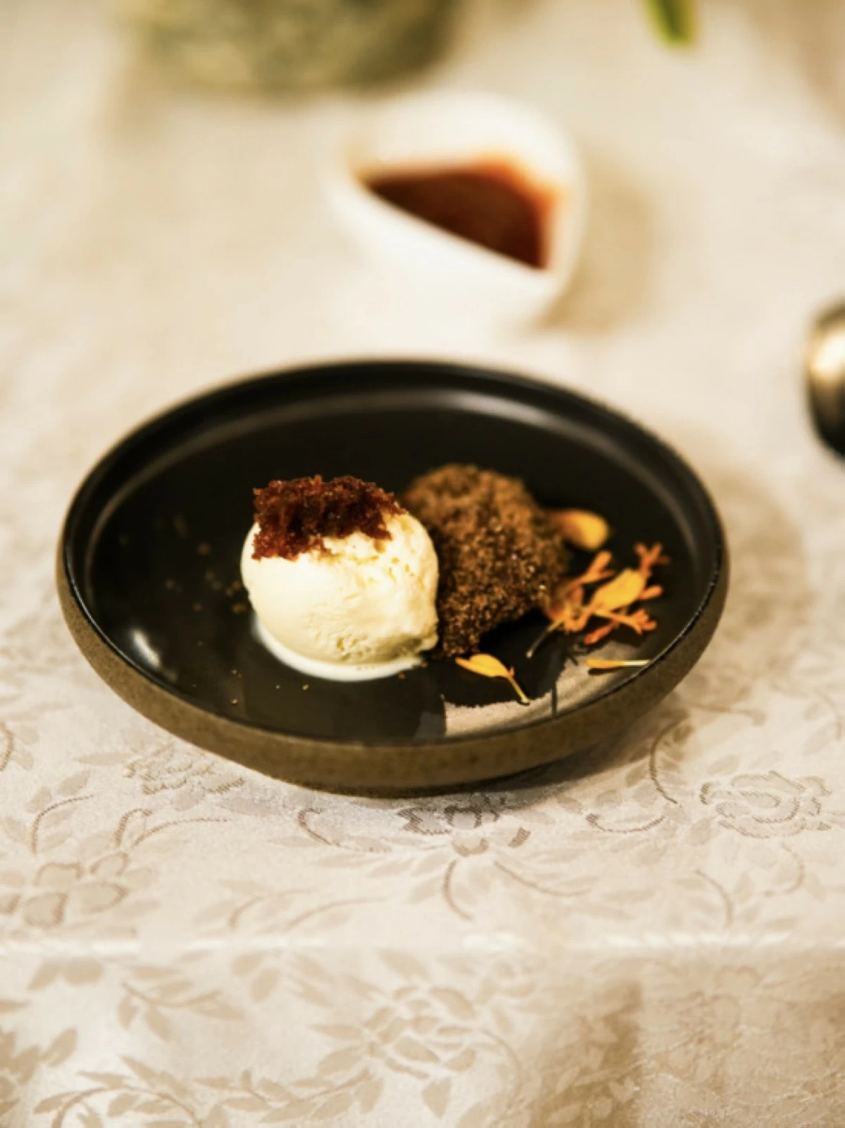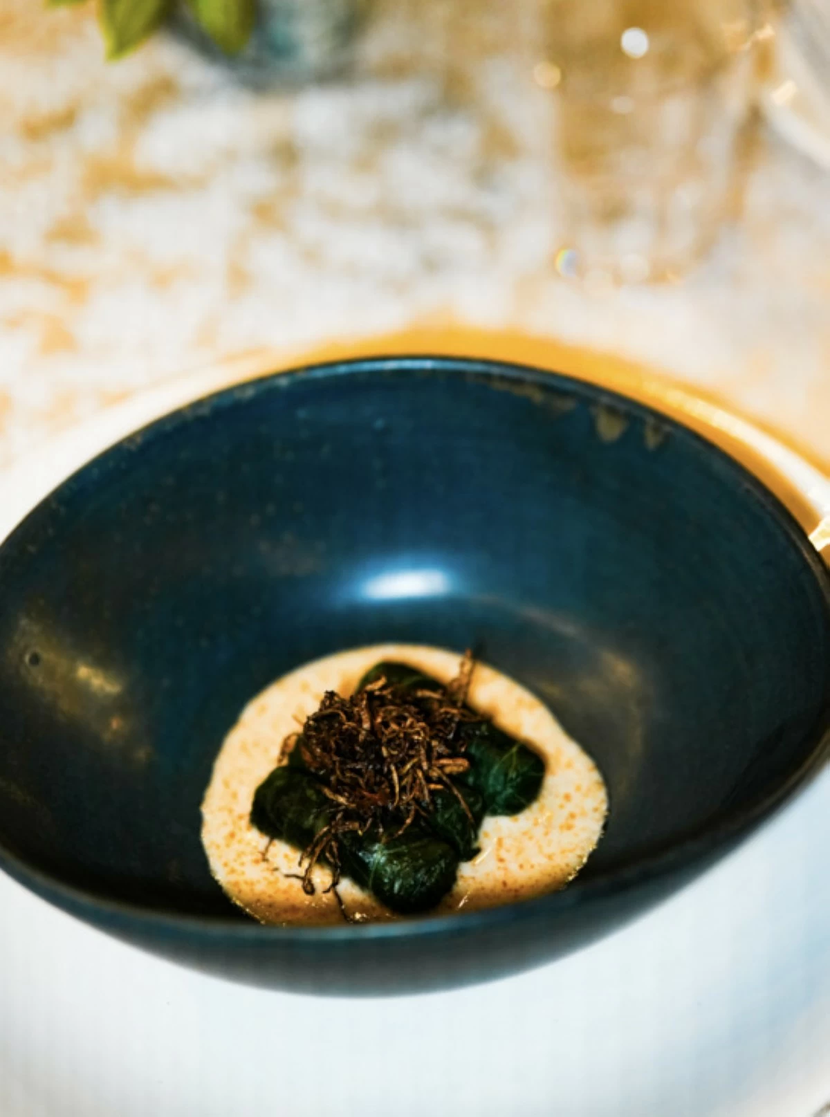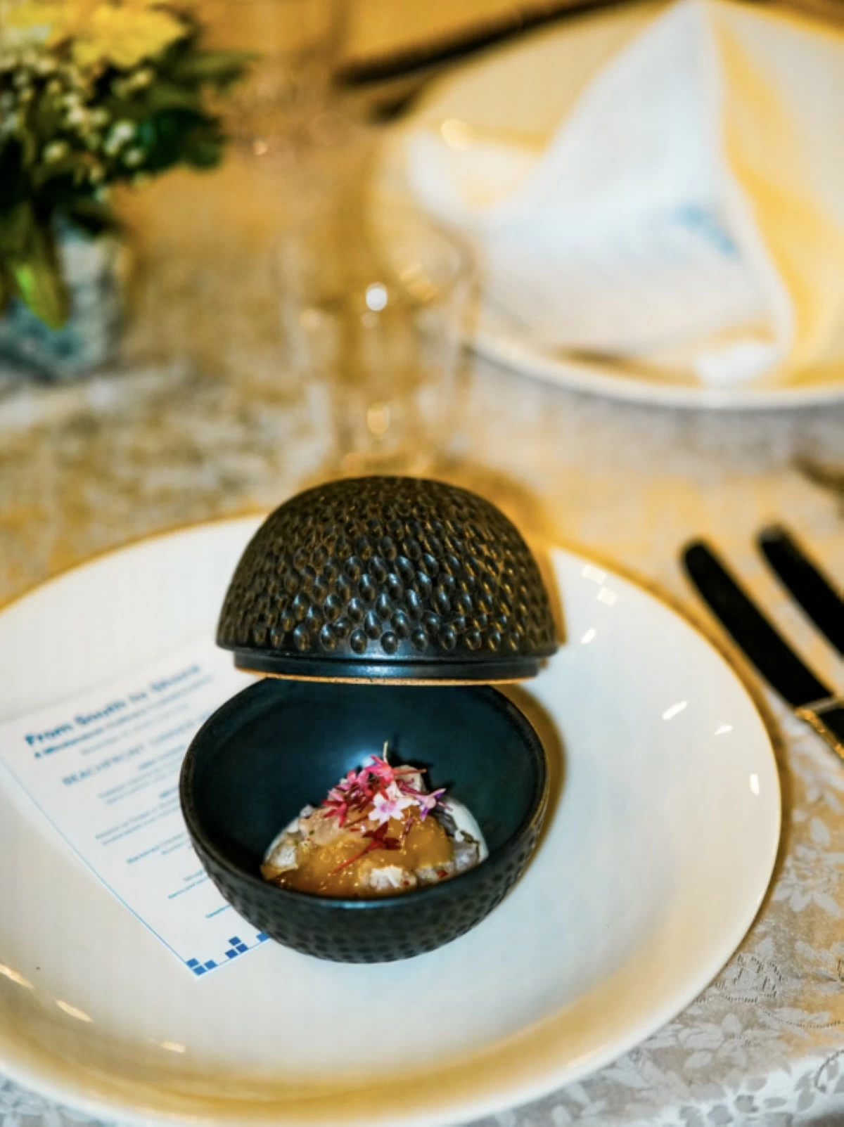 Standout dishes included Thalassic Ceviche—Spanish mackerel cured without vinegar, enriched instead with coconut milk and dried fish—and Blackened Chick of the Tausugs, featuring burnt coconut, turmeric rice, and Mindanaoan ensalada. Dessert was Hinti, a comforting composition of sweetened coconut mean, banana fritters, and house-made 100 percent carabao milk gelato.