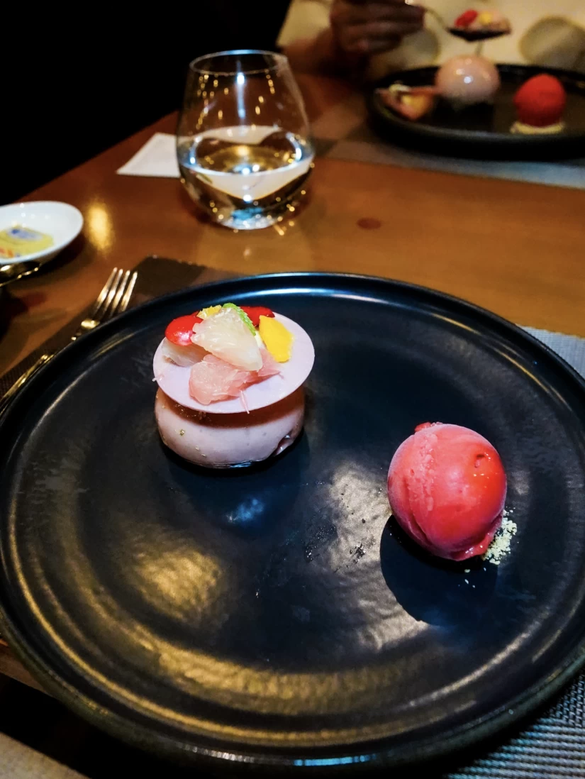 The dinner, paired with wines from AWC Philippines, also featured Scallop Ceviche, sea urchin leche de tigre, piment d’Espelette; Wagyu Flat Iron Steak, asparagus spears, roasted beef puree, braised morels, Aji Verde; and Pomegranate Mousse, pomegranate cremeux, citrus salsa, calamansi curd, and spicy strawberry sorbet.