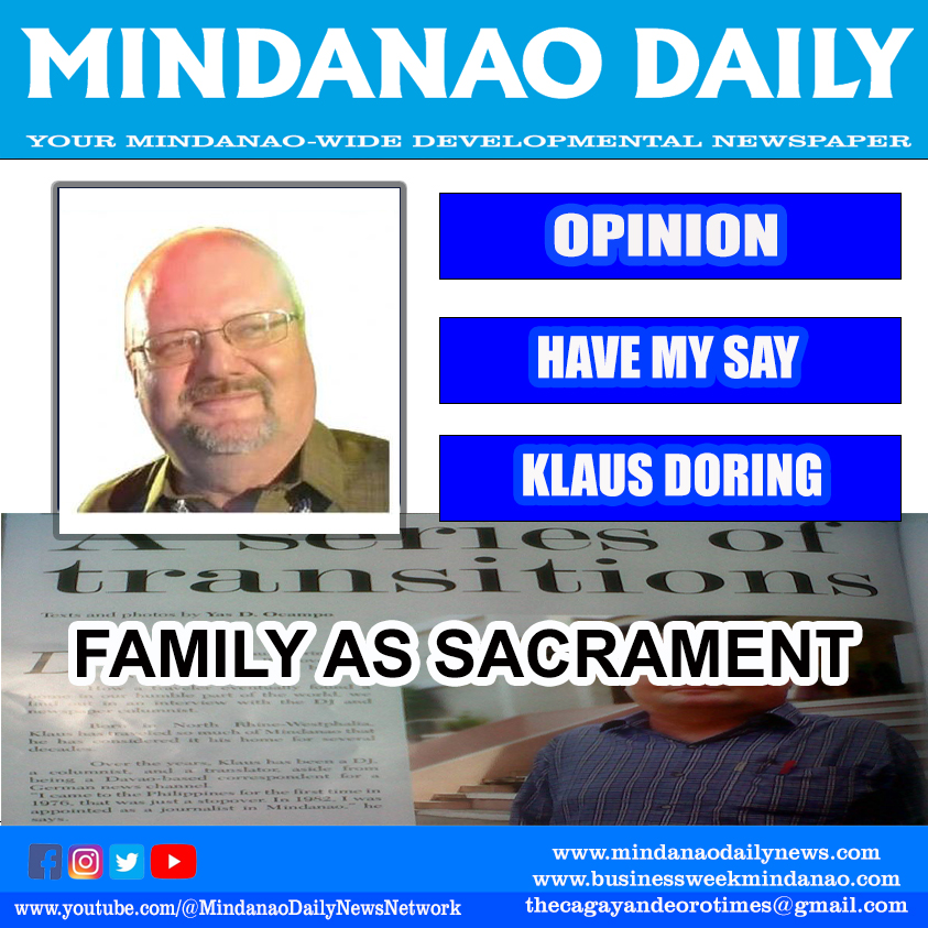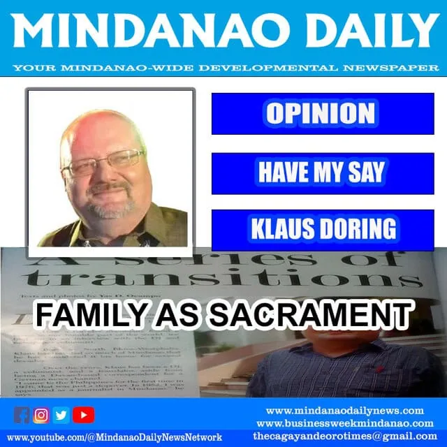 My Philippine mentor, Hermogenes E. Bacareza, former Chaplain of the Philippine community in Berlin and author of German-Philippine Relations, taught me in 1988: The Christian family is also called to be a sacrament. They are called, like the Church, to be Christ to one another, as well as to the broader community. By becoming what they are called to be, the family lives the sacramental life, and the sacred can bubble up through the ordinary things of everyday life.