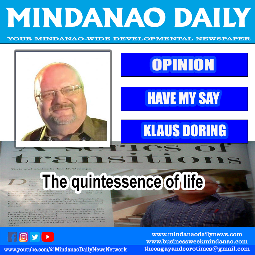 Life’s quintessence can be also this: Kindness, by helping the blind man crossing a street; hospitality, by practicing generous reception of strangers and guests (my very first impression, when I step on Philippine soil in June 1976!); helpfulness, by taking care of somebody, who is weak and dependent… .